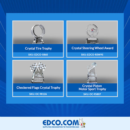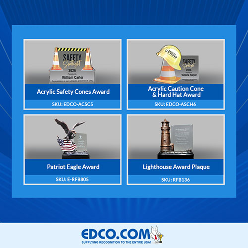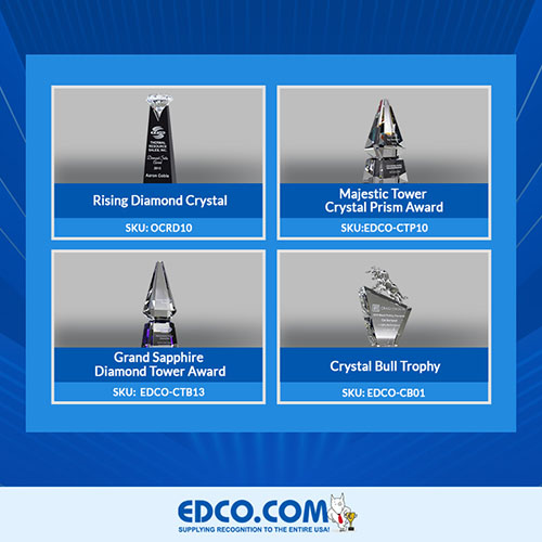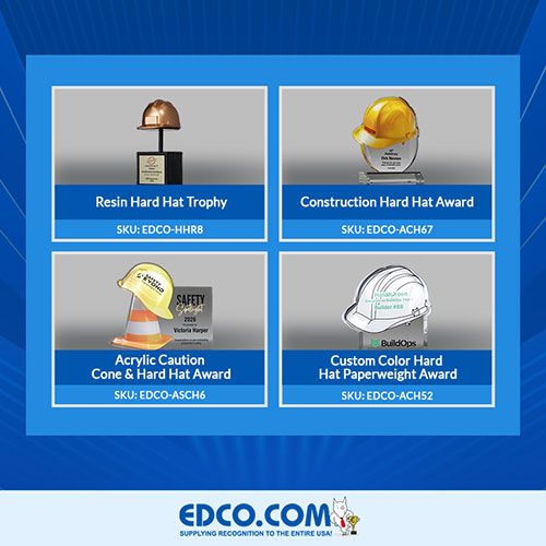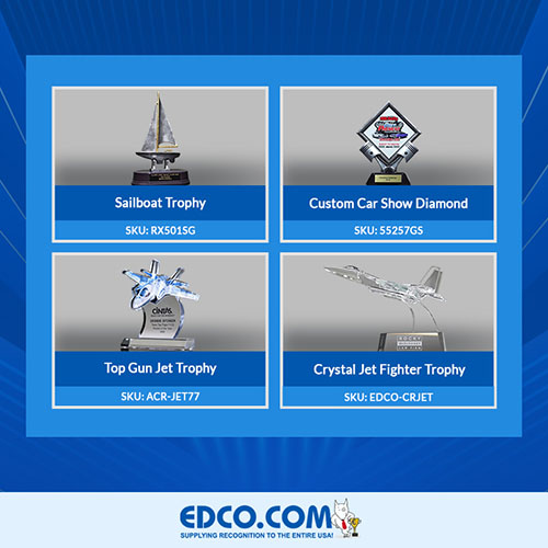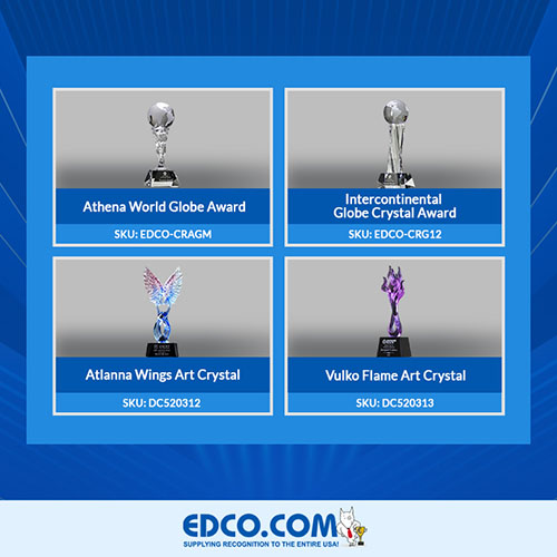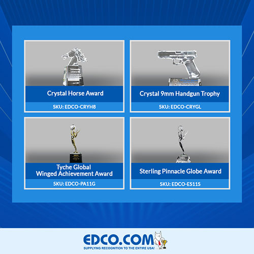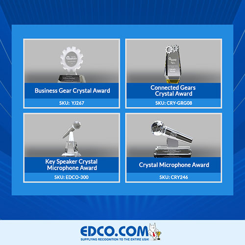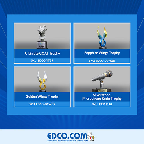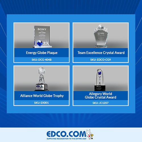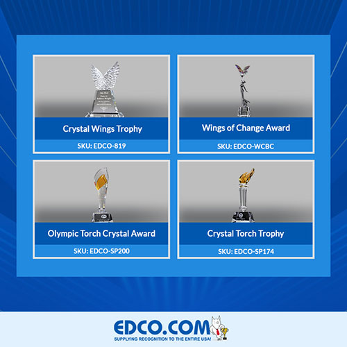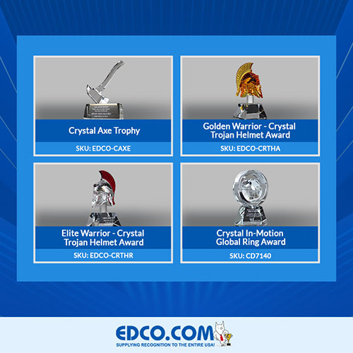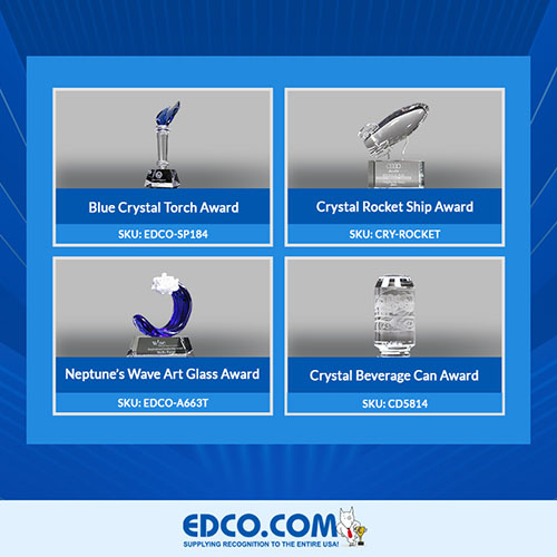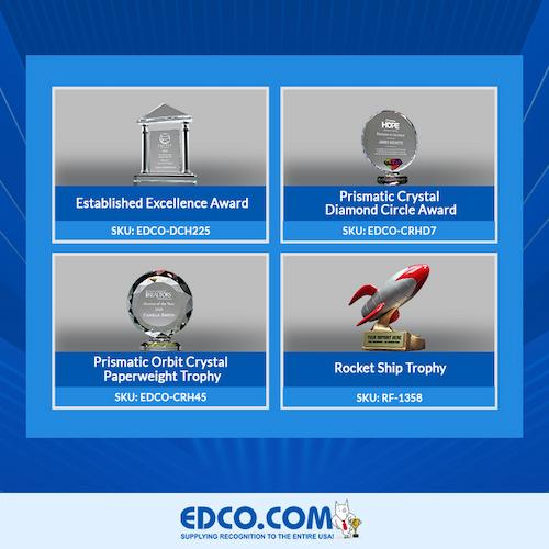 - EDCO offers a curated collection of trophies that go beyond traditional. Many designs feature playful themes like emojis, safety symbols, rockets, and art glass paired with customizable messages. This variety ensures companies can select awards that truly resonate with each recipient.