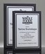 Choose our stately Black Acrylic Plaque to recognize your top performers. This plaque is constructed from premium black acrylic, beveled and features a decorative double metal rim. Your custom engraving and logo will be reproduced on a brushed silver plate as shown. Available in two sizes. Immediate shipping is available to the entire USA!