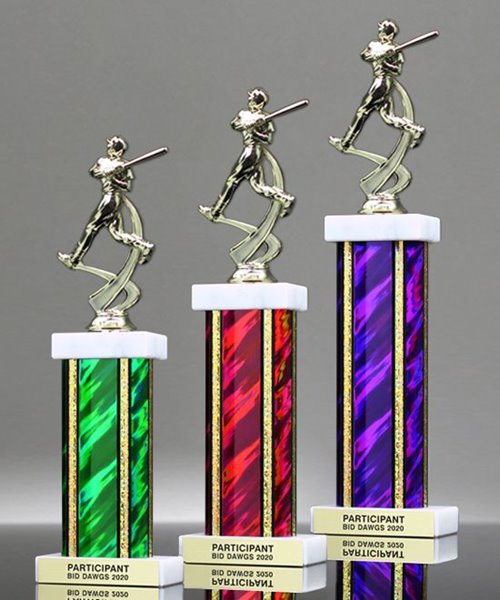 Introducing the Classic Baseball Trophy, a timeless symbol of excellence in the world of baseball. This prestigious award features our Live Action Baseball Figure and rectangular columns and a genuine marble base, exuding elegance and prestige. The Classic Baseball Trophy offers a range of column color options, allowing you to customize the trophy to match your team's colors or preferences. Furthermore, the trophy includes a custom engraved plate, providing the opportunity to personalize it with the recipient's name, team details, or any other desired inscription. With its sophisticated design, versatile customization options, and enduring appeal, the Classic Baseball Trophy represents the pinnacle of achievement and serves as a cherished memento of extraordinary accomplishments on the baseball diamond.