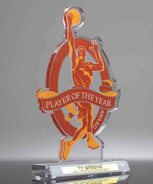 Introducing our Custom Basketball Acrylic Award, a sleek and contemporary recognition piece that epitomizes excellence on the court. Crafted from durable 3/8" thick acrylic, this award is not only visually striking but also built to last. What sets this award apart is its customizable nature – it can be tailored to match your team colors, with personalized text and optional team logos adding a unique touch. The innovative design includes an additional imprint area on the base plate, allowing for further personalization and making it truly one-of-a-kind. Whether it's to honor the entire team's achievements or to recognize an exceptional player, this Custom Basketball Acrylic Award is the perfect choice for commemorating success in style.