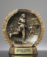 The Eagle Bronzestone Award makes a fantastic recognition award or gift. It stands 7.5" tall and is considered a 'heavyweight' for its size. This eagle trophy is made from resin and decorated with an antique gold finish.