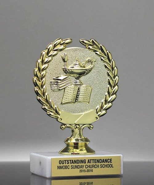 The Knowledge Banner Trophy is a striking and meaningful award that celebrates academic success and the pursuit of learning. Featuring a bold banner design with the timeless lamp of knowledge symbol, this trophy represents the values of wisdom, growth, and achievement. Mounted on a classic white marble base, the award is completed with a custom gold plate where your congratulatory message is engraved in crisp black for a polished and professional finish. The Knowledge Banner Trophy is an ideal way to honor academic milestones, student participation, or special achievements in the classroom, making it a cherished keepsake for students and educators alike. Shipping available throughout the USA!