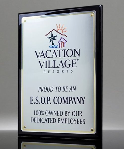 Celebrate excellence with our Large Format Ebony Plaque, a statement piece designed for maximum visual impact and lasting prestige. Crafted using an oversized piano-black board, this plaque showcases vibrant full-color UV printing that brings artwork, logos, and text to life with exceptional clarity and color depth. The advanced UV process allows for the application of white ink, creating bold contrast and a textured, tactile imprint that feels as premium as it looks. Available in three generous sizes, this award offers plenty of room for creative layouts and detailed personalization. The sample shown features an optional double rim design with notched corners, adding a modern accent to its timeless elegance. Perfect for high-profile corporate awards, retirement presentations, or milestone achievements, this plaque delivers unmatched sophistication and craftsmanship with fast nationwide shipping.