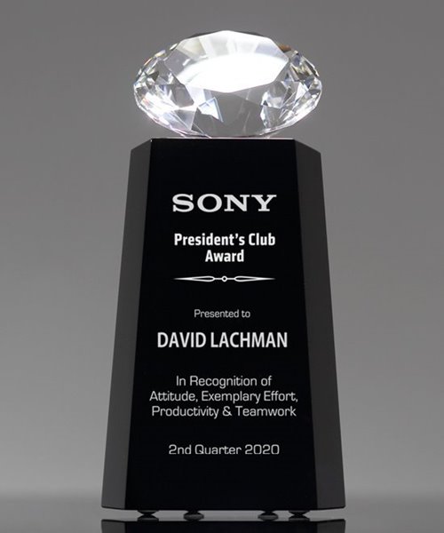 Choose our Presidential Diamond Award to celebrate a top performer, or to commemorate a milestone. Constructed from pure optical crystal, deep etched and silver or gold filled. Shipping is available to the entire USA!