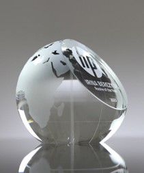 As the name would suggest, this award has a crystal model of the Earth which has been held up by three separate pieces of crystal that stretch upward and curve out. The model of our planet itself is four inches in diameter and includes the tri-pillar design refracts light beautifully.