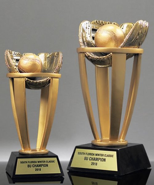 Available in 3 sizes to recognize your top finishers! The Tower Baseball Trophy shines with quality and sophisticated design. The baseball and glove is elevated atop a heroic stand lifting the ball up in glory. These trophies have a great presence and character. More massive than you would think! Immediate shipping available to the entire USA!