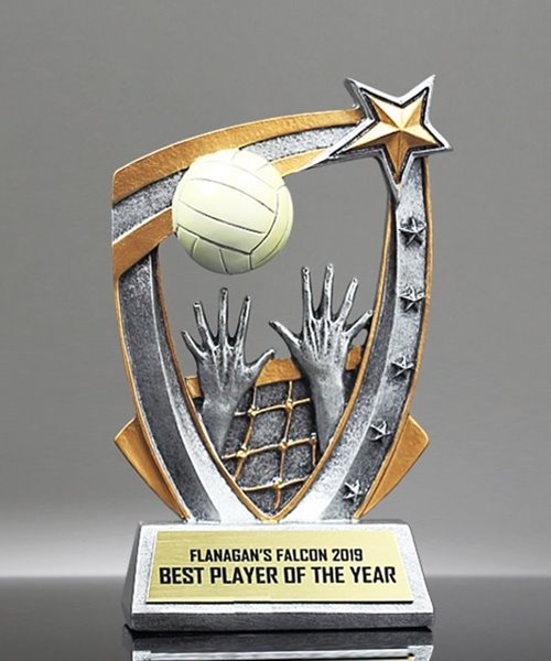 The Volleyball 3D Star Award features a classic pewter and gold finish combined with a new dimensional design. Your recipients will love this new award design. Immediate shipping available to the entire USA!